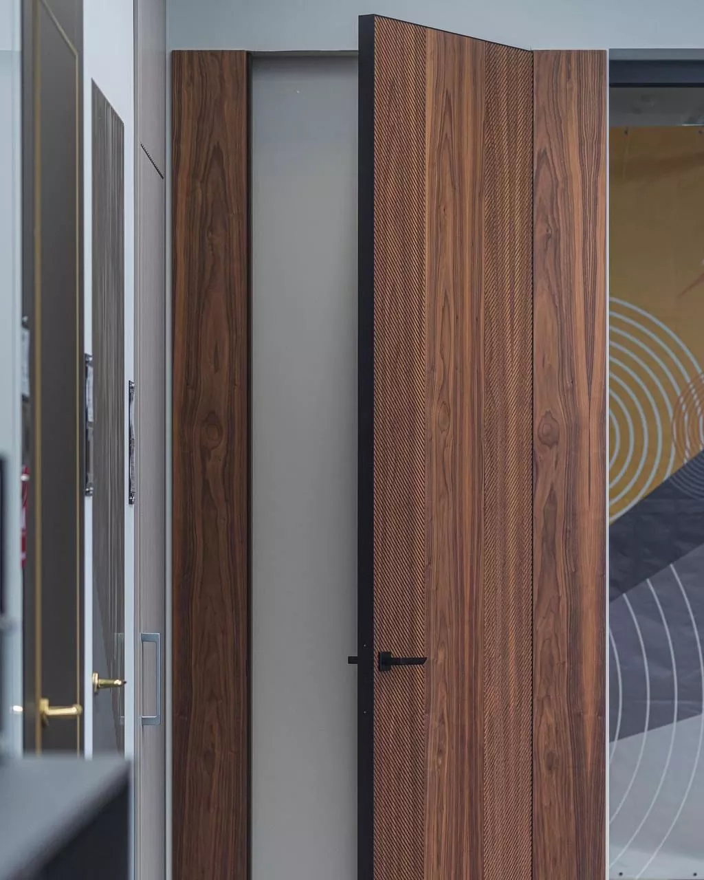 Коллекция COMBO в современном стиле выделяется частой глубокой фрезеровкой на полотнах. Двери коллекции могут быть изготовлены как в отделке из ламельного шпона американского ореха или натурального дуба, так и окрашены многослойной матовой эмалью.