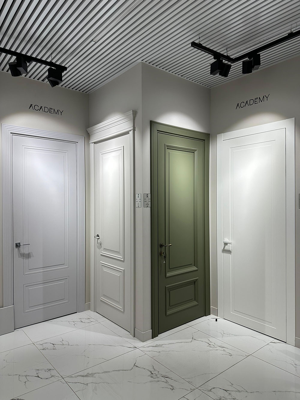 • Даже самая качественная дверь не обеспечит хорошую звукоизоляцию, если она неправильно установлена. Коллекции Academy изготавливаются под заказ, шаг от 1мм (в зависимости от коллекции и отделки), поэтому дверь может быть выполнена в идеальном соответствии с размерами существующего проема. Толщина полотен – до 65мм в зависимости от модели, типа короба и открывания.